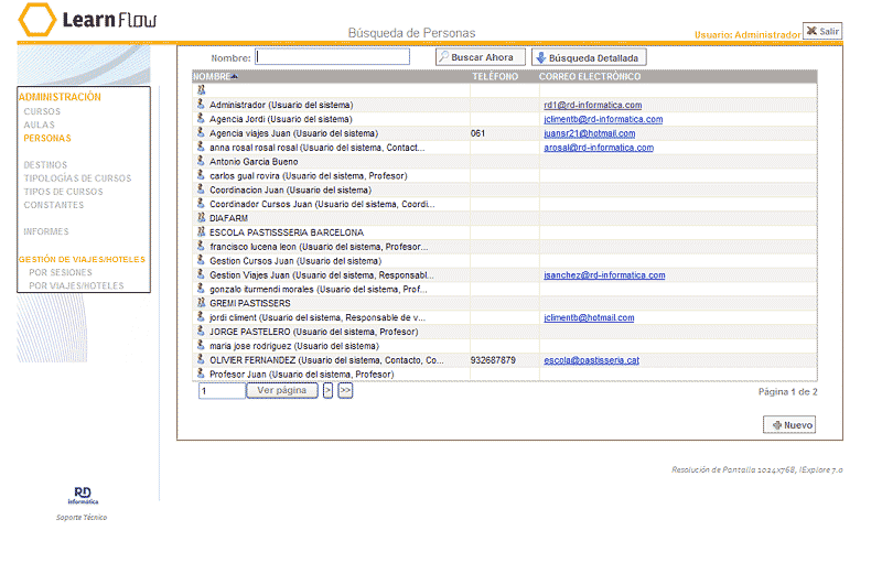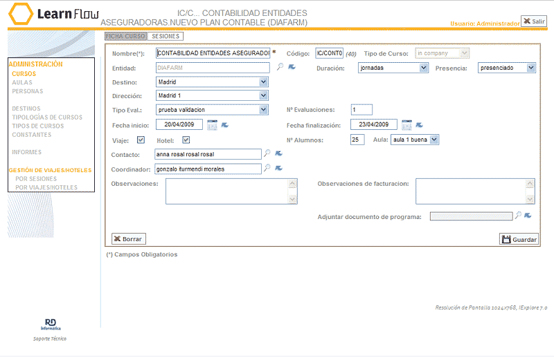 Aplicación para planificación y gestión de viajes (vuelo, hotel) de su personal docente a la hora de impartir cursos en aulas ajenas al centro (empresa cliente u otros centros de formación).